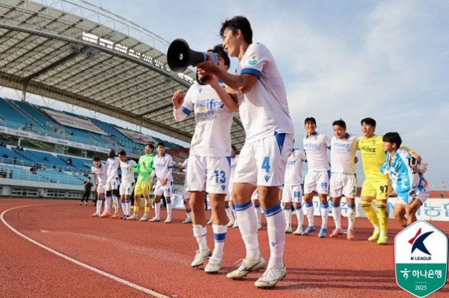 윤정환 감독이 이끄는 인천은 19일 안산 와~스타디움에서 열린 하나은행 K리그2 2025 35라운드 안산 그리너스 원정에서 1-0으로 승리했다. 3경기 만에 승리를 거둔 인천(승점 74)은 K리그2 우승과 다이렉트 승격에 한 발 더 다가섰다.