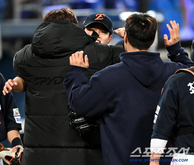 [대구=스포츠조선 허상욱 기자] 한화 류현진이 플레이오프 3차전 승리를 지켜낸 문동주를 뜨겁게 끌어안으며 승리의 기쁨을 함께했다.