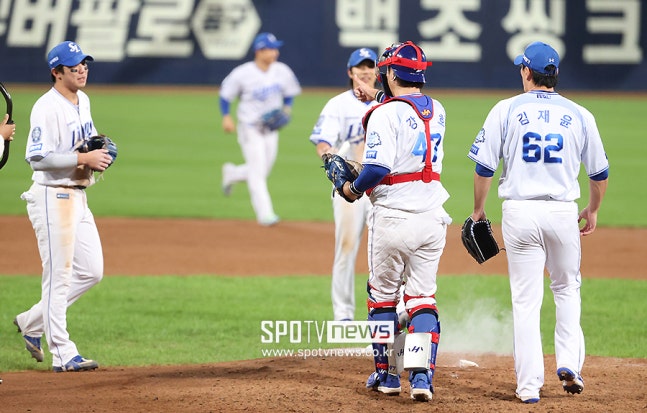 경기 종료 후 마운드 위에서 승리의 기쁨을 나누던 삼성 베테랑 포수 강민호는 김영웅을 바라보고는 90도로 허리를 숙여 인사를 했다. 벼랑 끝 승부에서 팀을 구해낸 김영웅의 맹활약에 경의를 표한 순간이었다.