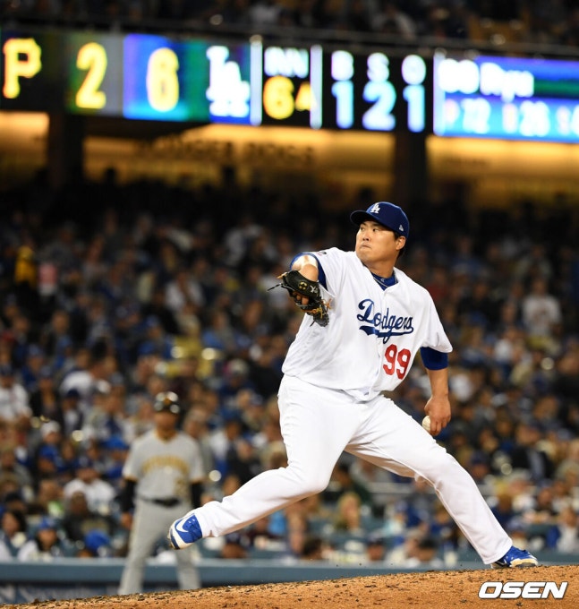 [OSEN=LA(미국 캘리포니아주), 최규한 기자] 27일(한국시간) 미국 캘리포니아주 로스앤젤레스 다저스타디움에서 ‘2019 메이저리그’ LA 다저스와 피츠버그 파이어리츠의 경기가 열렸다.6회초 다저스 류현진이 역투하고 있다. /[email protected]