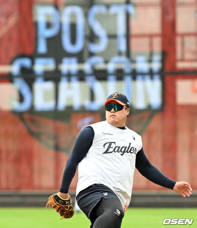 [OSEN=대전, 이대선 기자] 17일 오후 대전 한화생명볼파크에서 2025 신한 SOL Bank KBO리그 포스트시즌 플레이오프 1차전 한화 이글스와 삼성 라이온즈의 경기가 열렸다.한화는 폰세, 삼성은 가라비토를 선발 투수로 내세웠다.경기에 앞서 한화 류현진이 훈련 중인 선수들을 바라보고 있다. 2025.10.17 /[email protected]