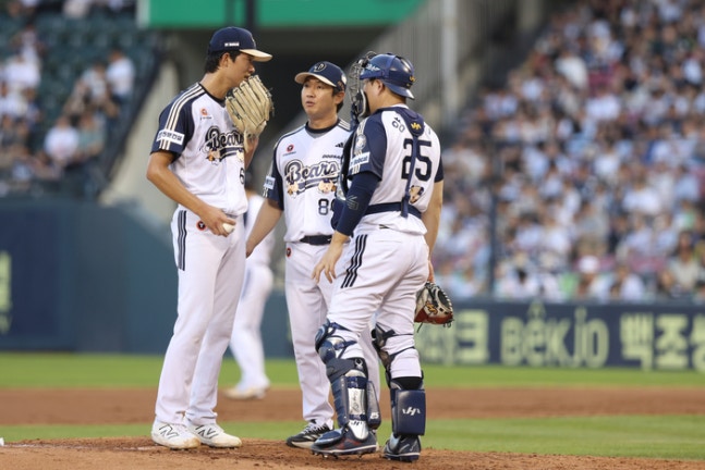 | 두산을 떠나 KIA에서 지도자 생활을 하게 된 김지용 코치(가운데). 사진 | 두산 베어스 |