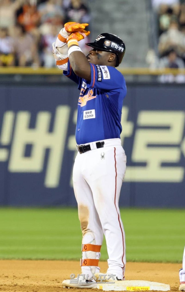 28일 오후 서울 잠실야구장에서 열린 프로야구 한화와 LG 경기. 한화 페라자가 8회 선두타자로 나와 우중간 2루타를 기록한 뒤 기뻐하고 있다. 잠실=정시종 기자 /2024.07.28.