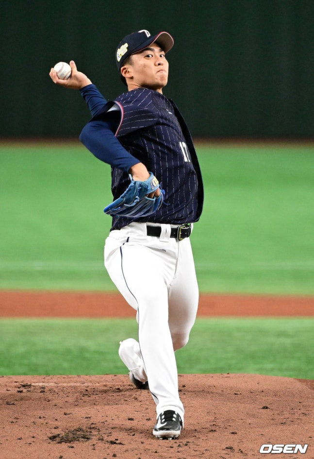 2023년 11월 18일 오후 일본 도쿄돔에서 열린 '2023 아시아프로야구챔피언십(APBC)' 대한민국과 대만의 경기에서 대만 선발 왕옌청이 역투하고 있다.