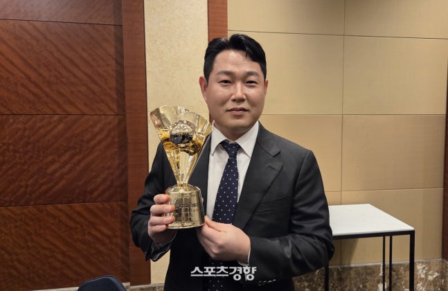 24일 KBO 시상식에서KBO리그 투수부문 홀드상을 수상한 SSG의 노경은이 포즈를 취하고 있다. 연합뉴스
