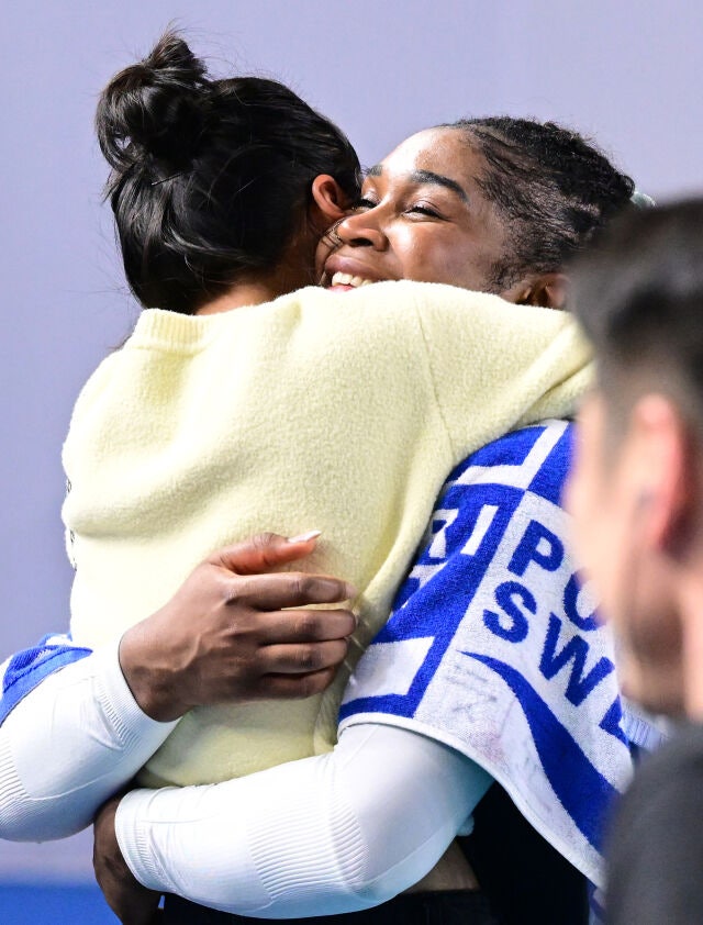 한국도로공사 모마가 최윤지 통역과 포옹하고 있다 / 한국배구연맹(KOVO)