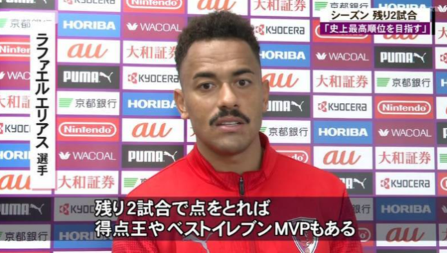 엘리아스 본인도 개인 수상에 대한 강렬한 열망을 드러냈다. 일본 '야후'에 따르면 엘리아스는 "부상 기간 동안 3경기에 나서지 못하면서 득점이 없었다. 남은 경기에서 득점을 하면 득점왕, 베스트 11, MVP도 가능하다. 원래는 리그 우승이 가장 큰 목표였으나, 그다음 목표인 개인 수상을 노리고 싶다"라고 말한 것으로 드러났다.