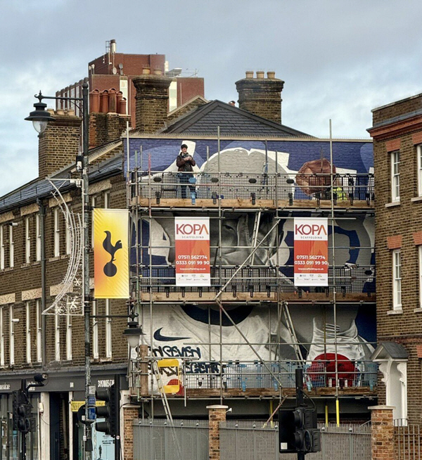 [스포티비뉴스=조용운 기자] 토트넘 홋스퍼의 홈구장 주변 하이로드 한복판에 거대한 벽화가 모습을 드러냈다. 벽 한 면을 온전히 뒤덮은 익숙한 얼굴의 주인공은 바로 토트넘 레전드 손흥민(33, 로스앤젤레스FC)이다.