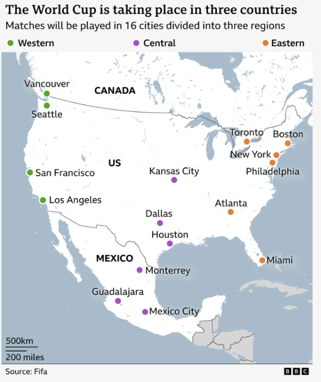 북중미월드컵 개최도시. BBC