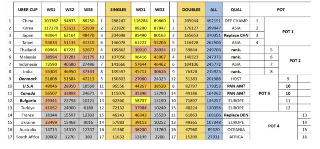배드민턴 전문 매체 '트래커 MS/WS'는 15일(한국시간) 사회관계망서비스(SNS)를 통해 "우버컵의 모든 포트가 확정됐다"라고 발표했다.