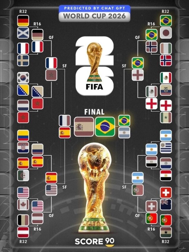 챗GPT는 브라질이 결승전에서 스페인을 3-1로 꺾고 우승할 것으로 전망했다. /스코어90 제공