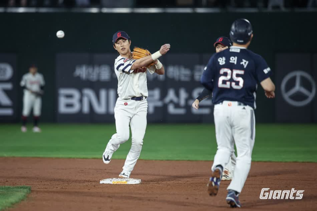김태형 감독이 박승욱(3루수)-전민재(유격수)-이호준(2루수)-장두성(중견수)으로 이어지는 수비 특화 라인업을 가동하며 짠물 야구를 펼칠 수 있는 가장 큰 원동력 역시 사령관 전민재의 존재감 덕분이다.