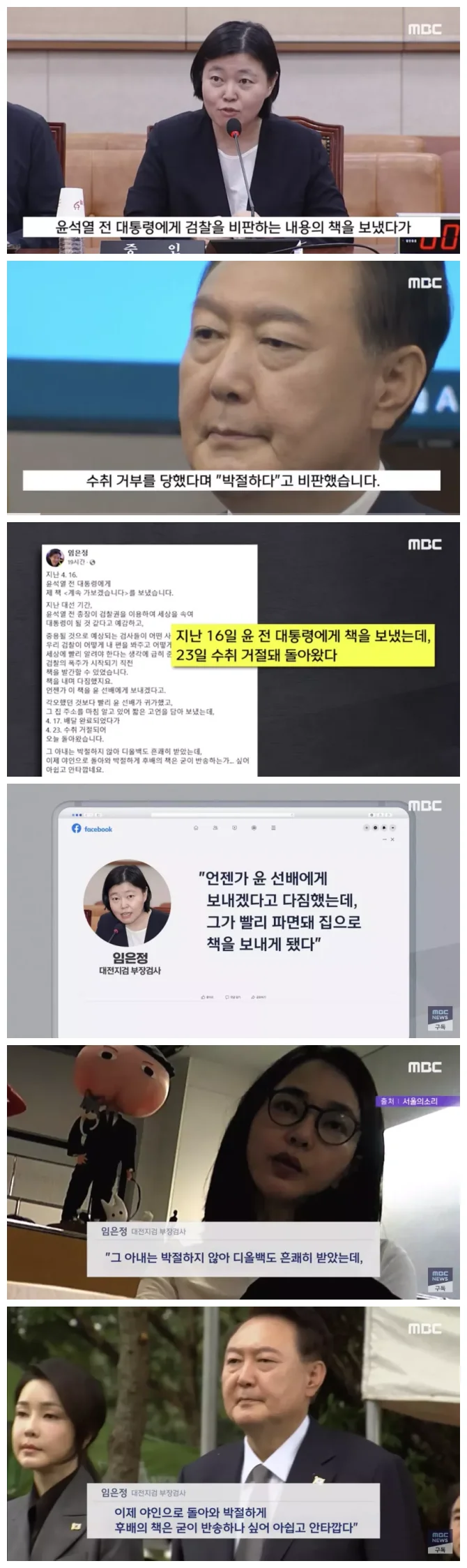 임은정 대전지검 부장검사가 윤석열 전 대통령에게 검찰을 비판하는 내용의 책을 보냈다가 수취 거부를 당했다며 "박절하다"고 비판했습니다.