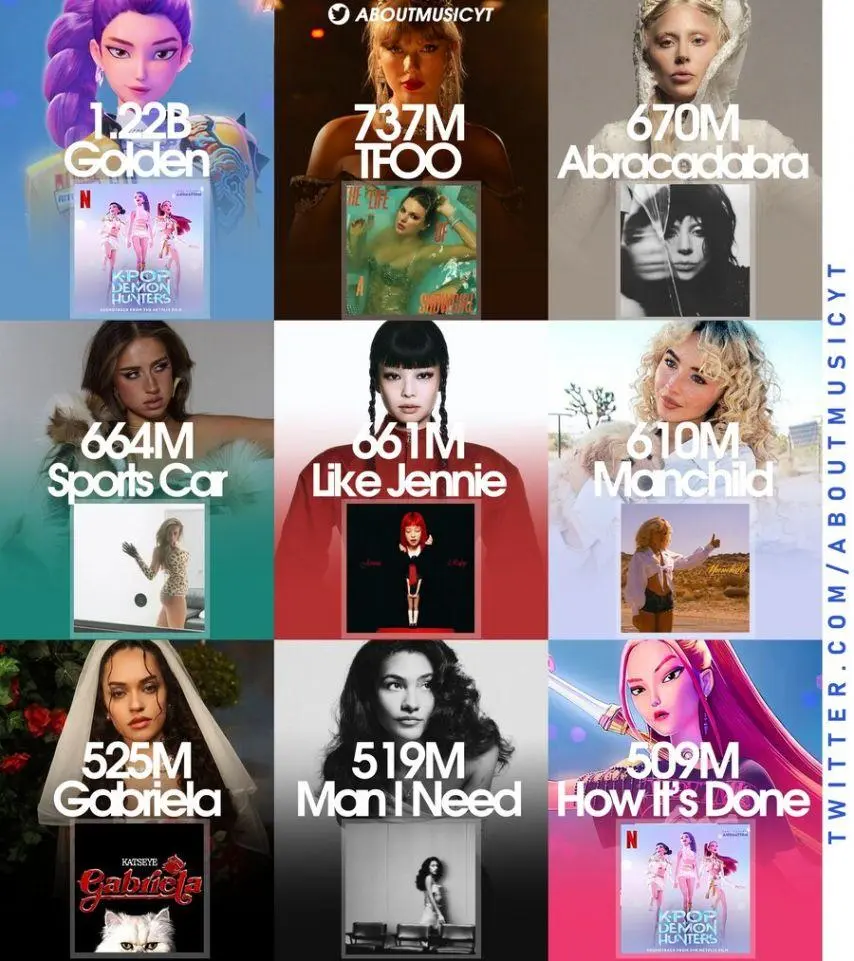 2025 전세계 최다 스트리밍 여성 가수 노래