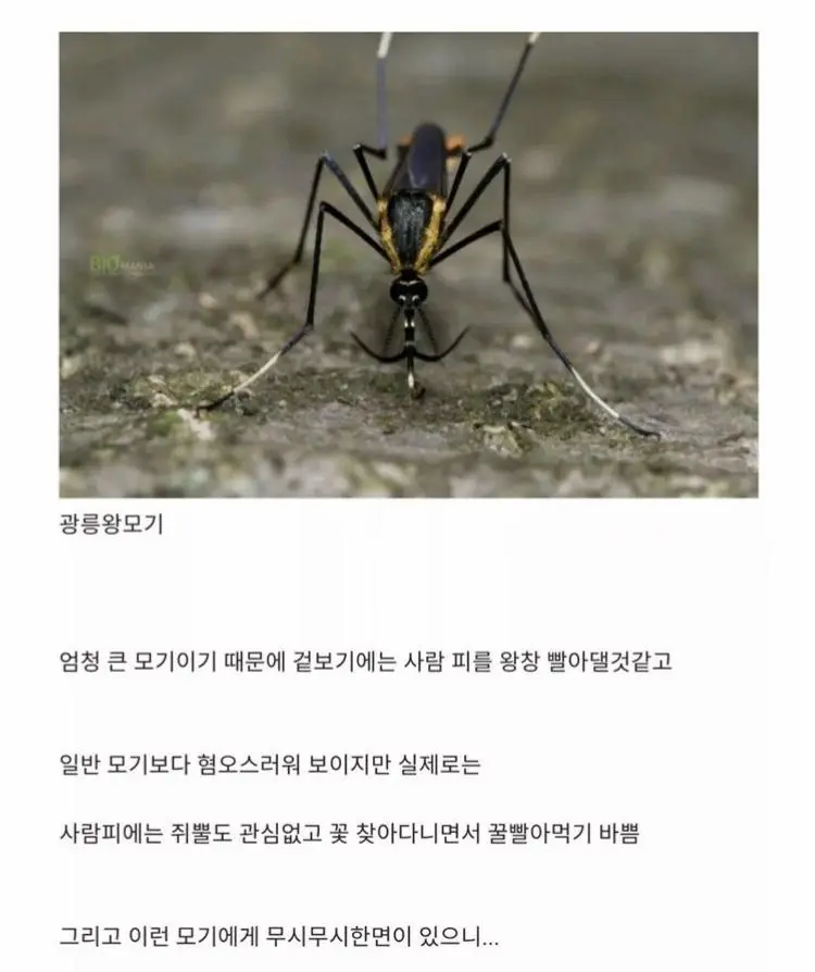 한국에 서식한다는 착한 모기