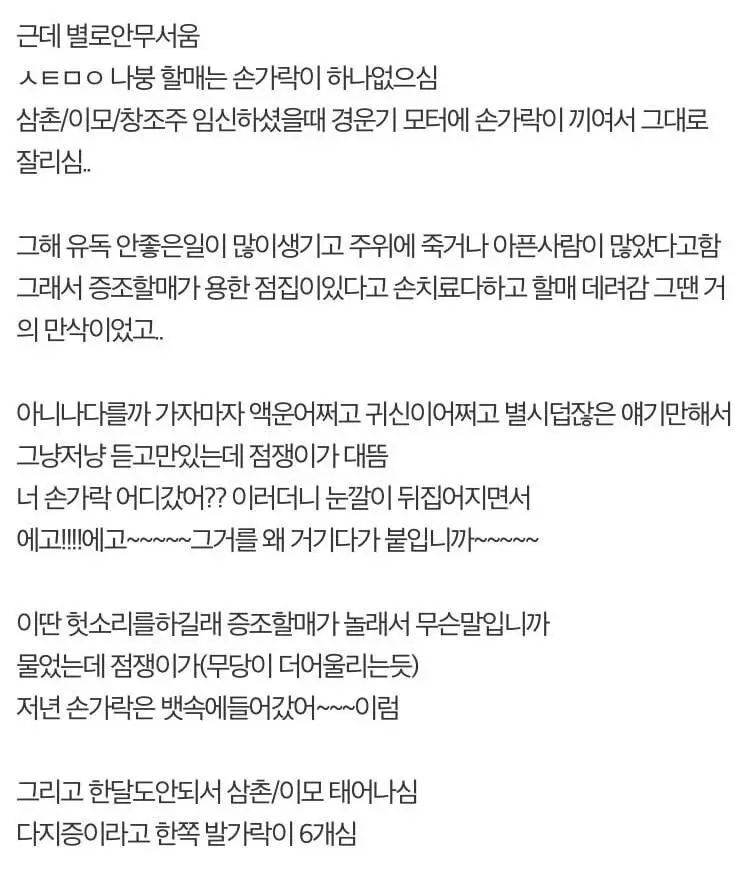 손가락 하나가 없으셨던 우리 할머니.