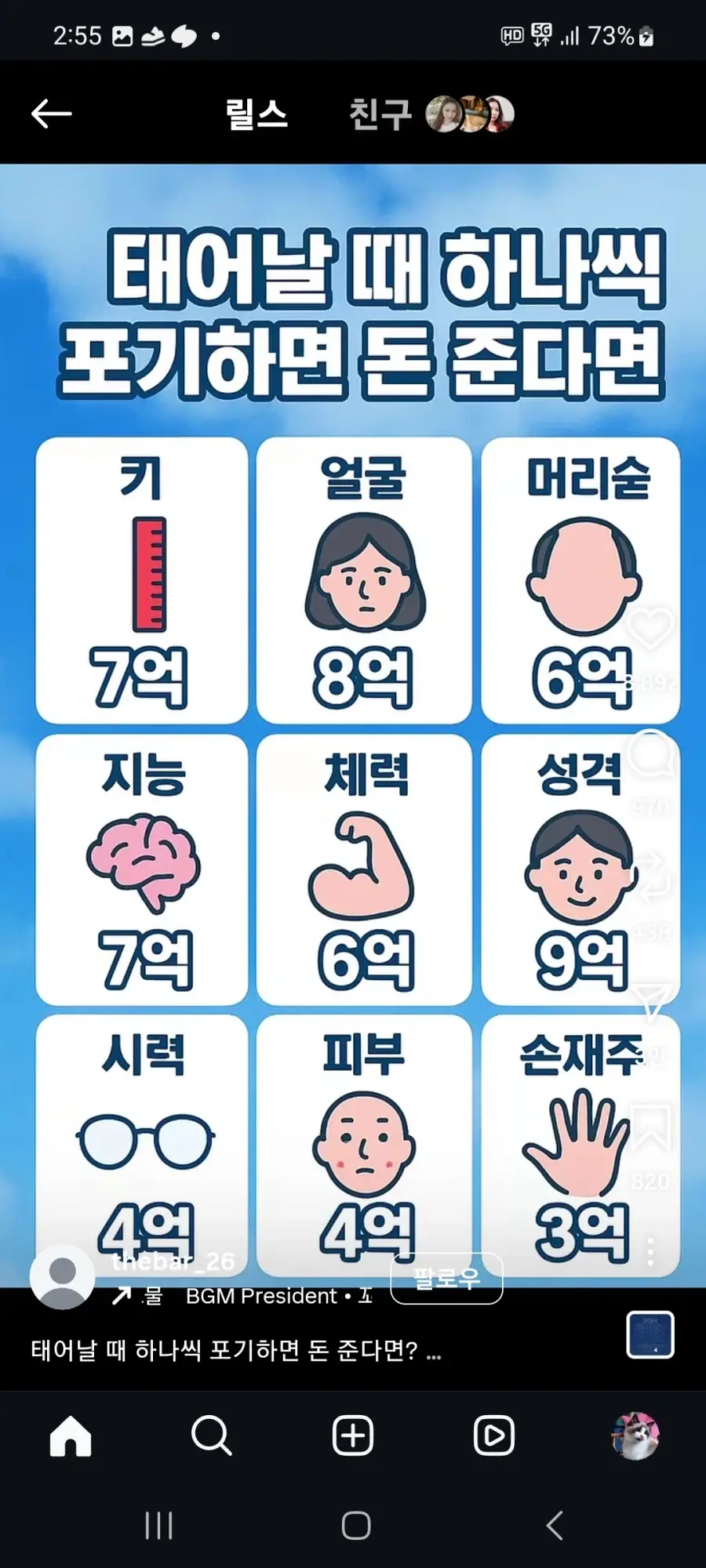 태어날 때 하나씩 포기하면 돈 준다면?