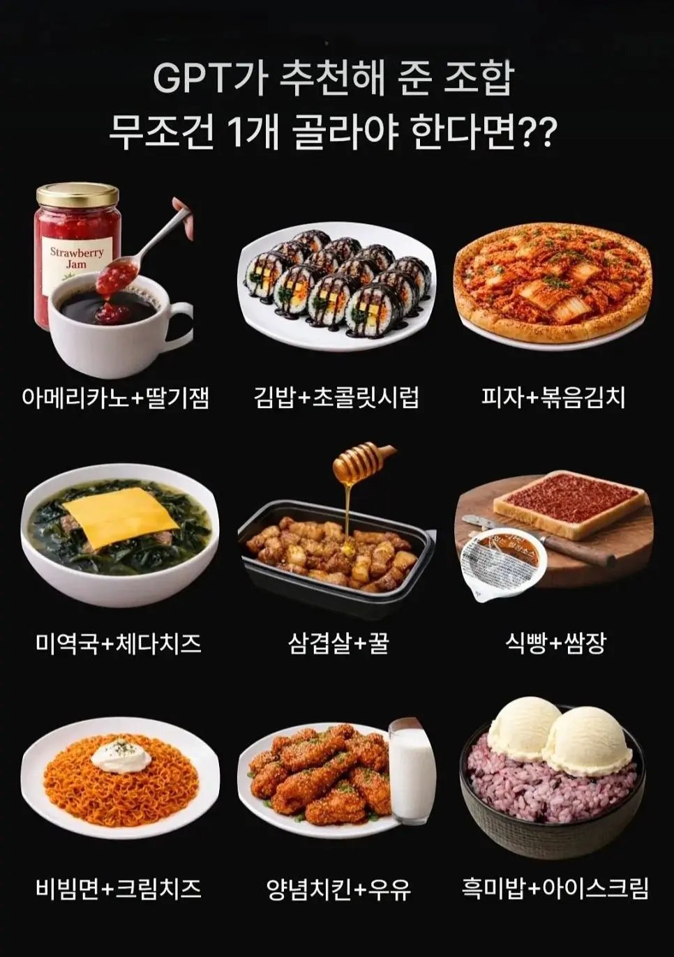 GPT 가 추천해준 조합 무조건 1개 골라야 한다면?