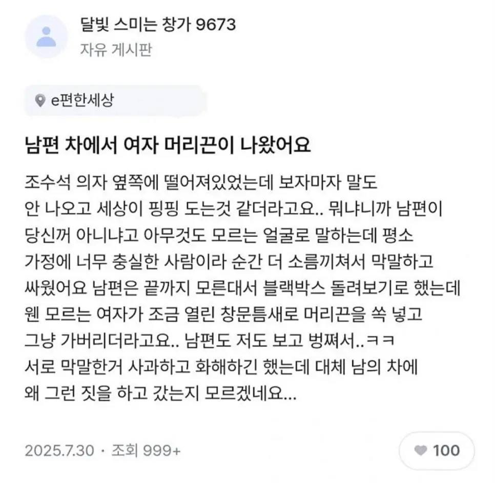 남편차에서 나온 여자 머리끈의 비밀