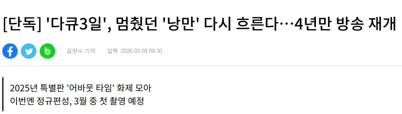 다큐 3일 4년 만에 다시 방영 예정.JPG