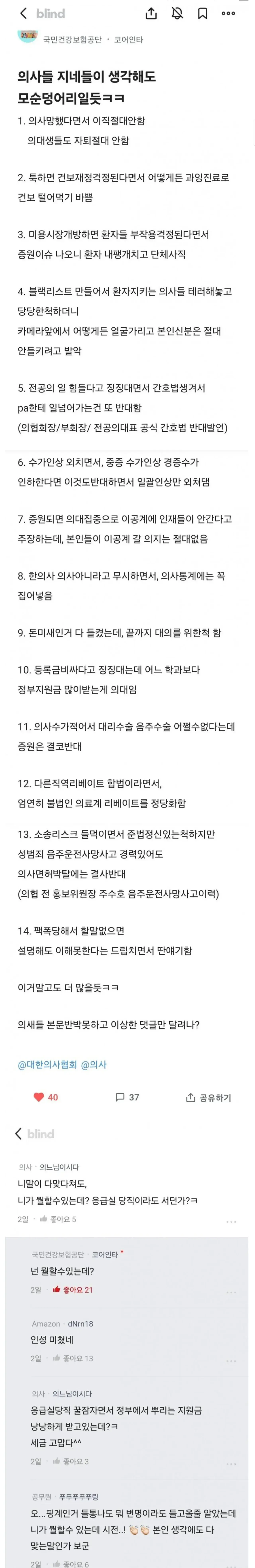 블라에서 한판 붙은 의느님vs건보공단