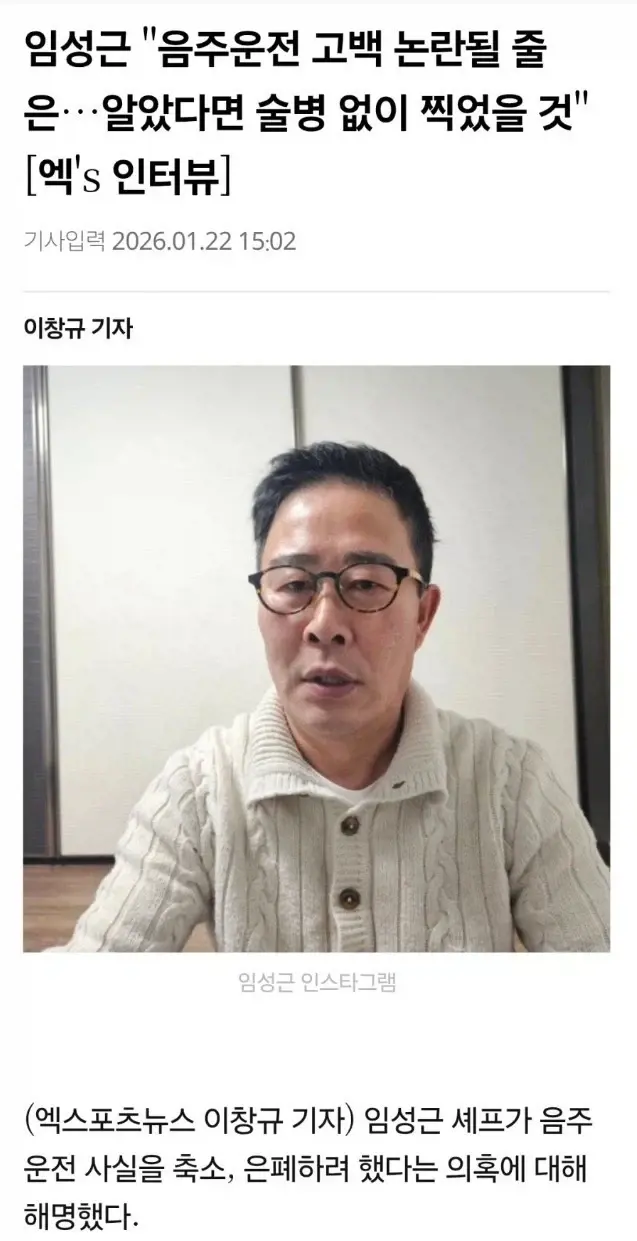 임성근 "음주운전 고백 논란 될 줄 몰랐다"