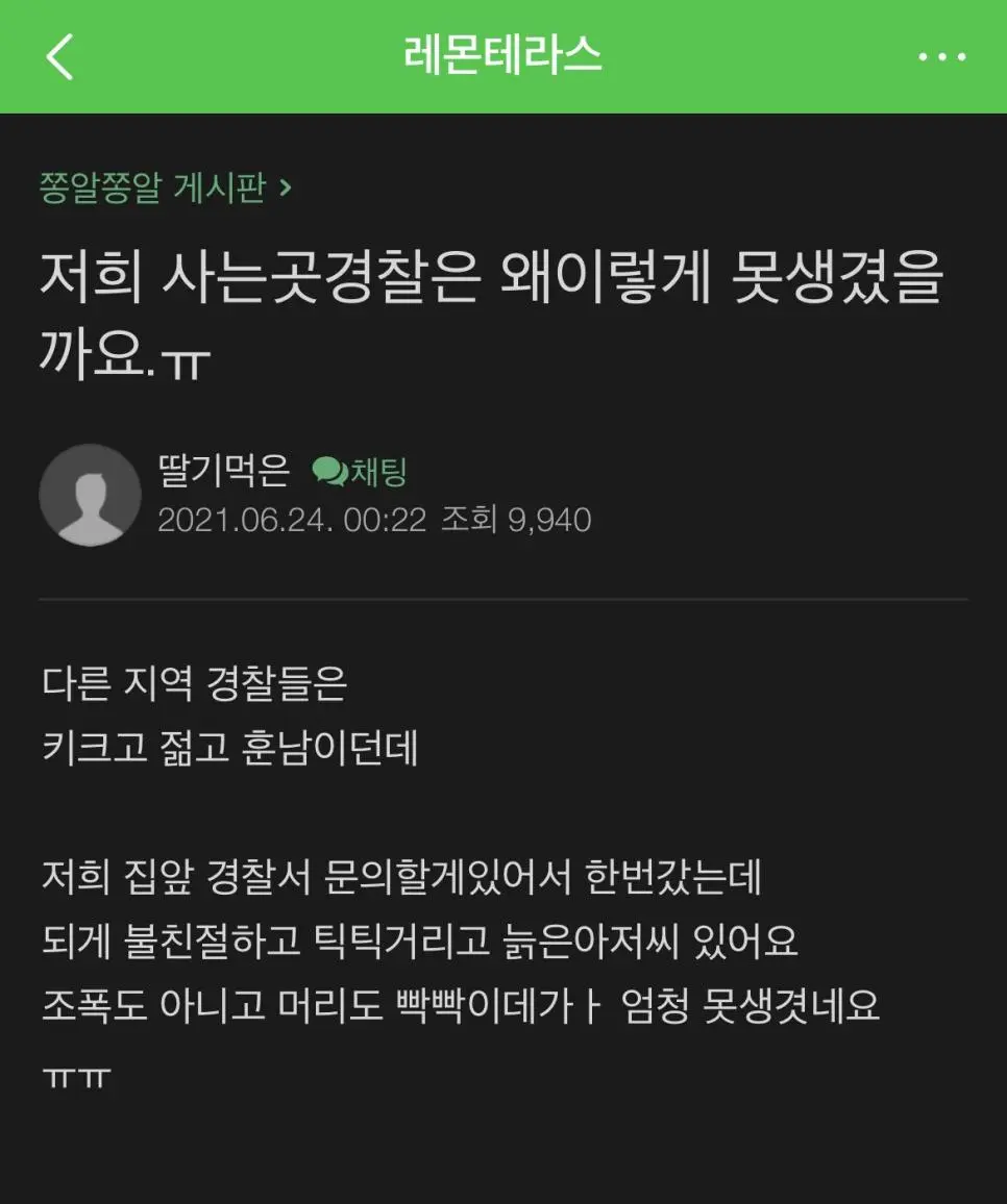 저희 사는곳 경찰은 왜캐 못생겼나요ㅠㅠ