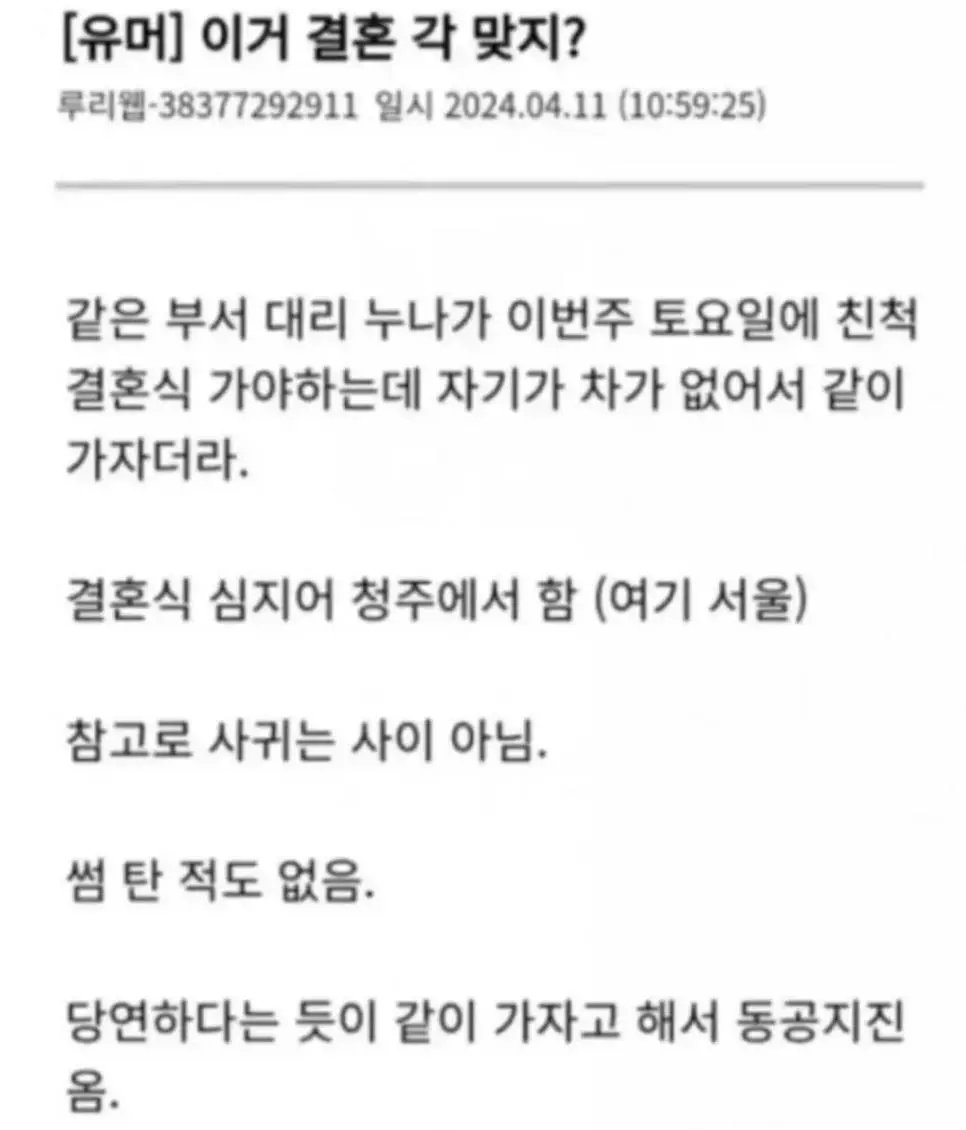 회사 대리 누나가 카풀해달래서 카풀한 후기