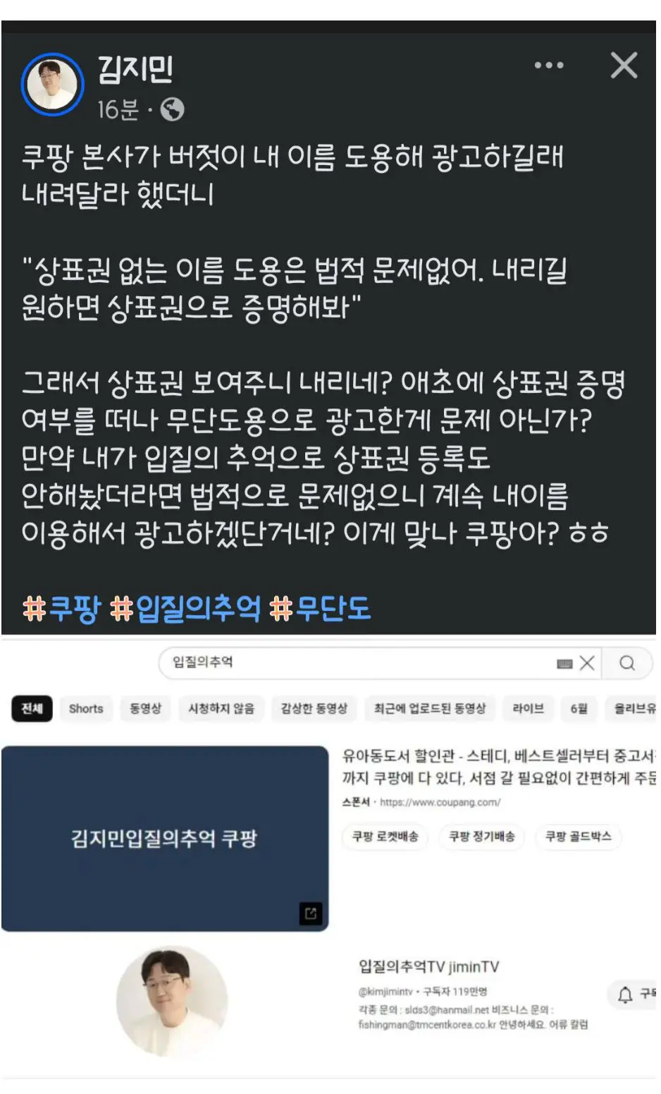 입질의추억에 상표권으로 증명하라는 쿠팡