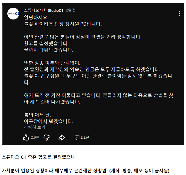 가처분 패소한 불꽃야구 근황