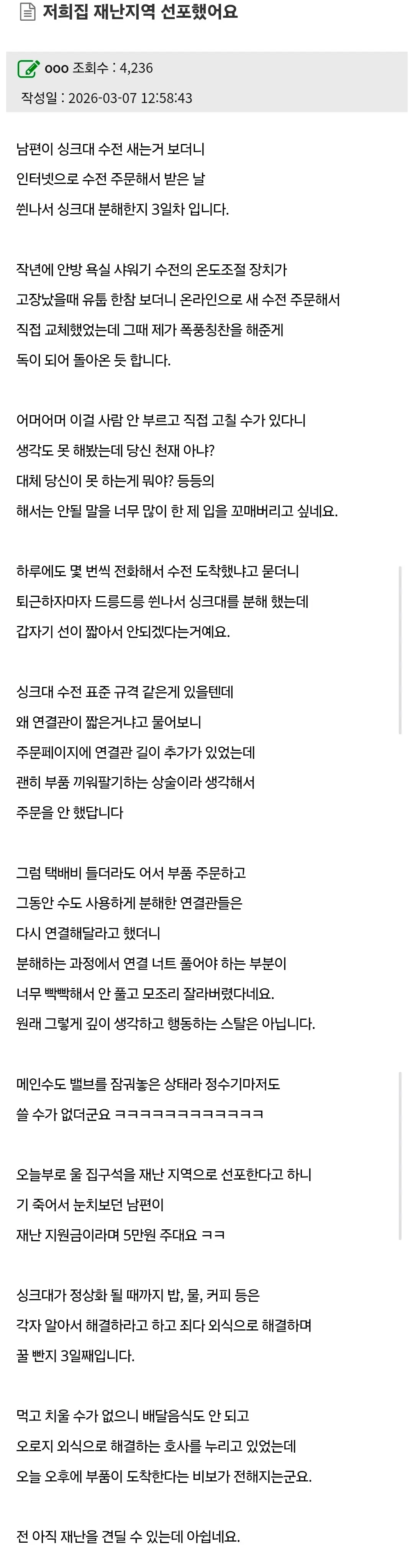 우리집 재난지역 선포됨