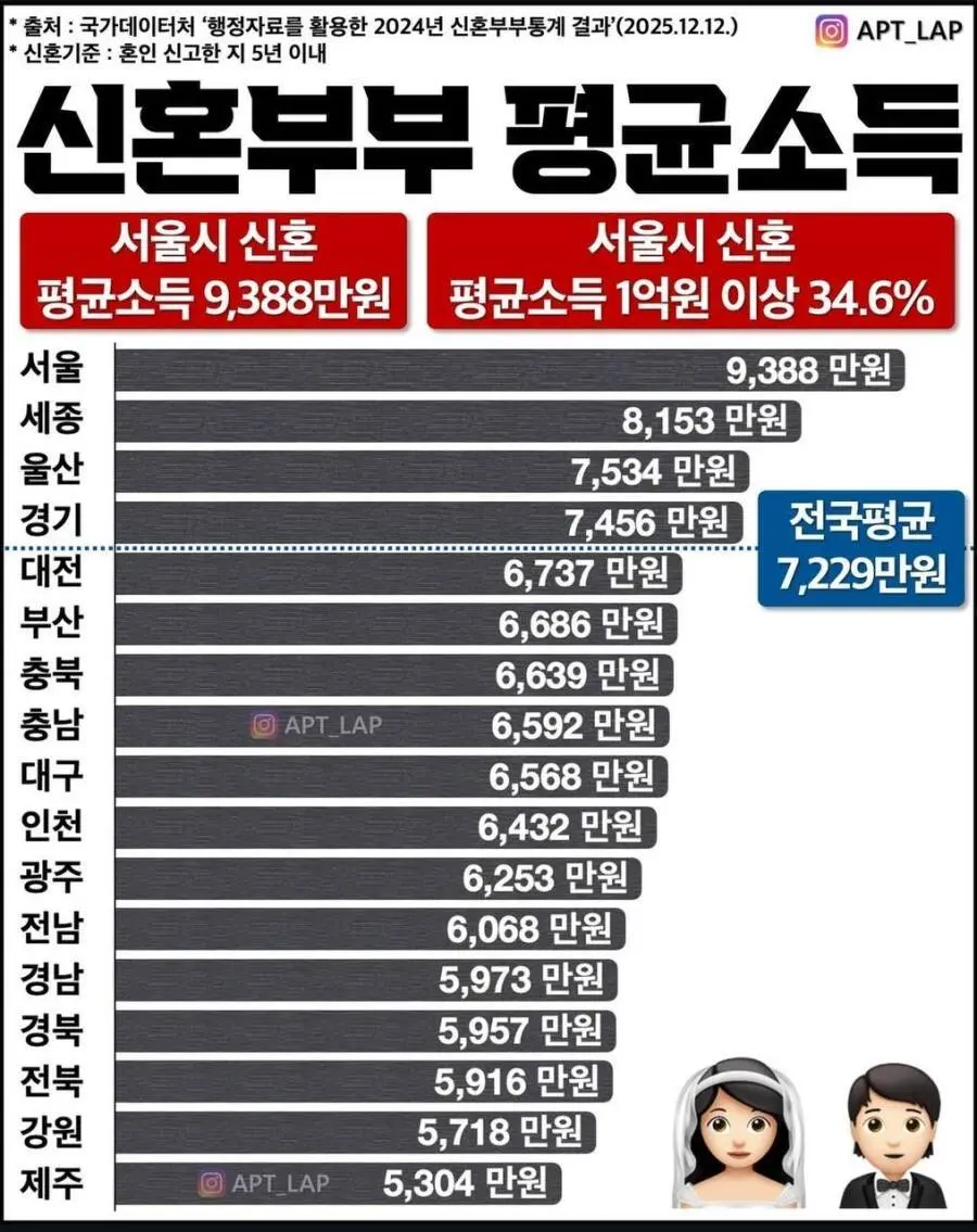 요즘 신혼부부 평균소득 ㄷㄷ