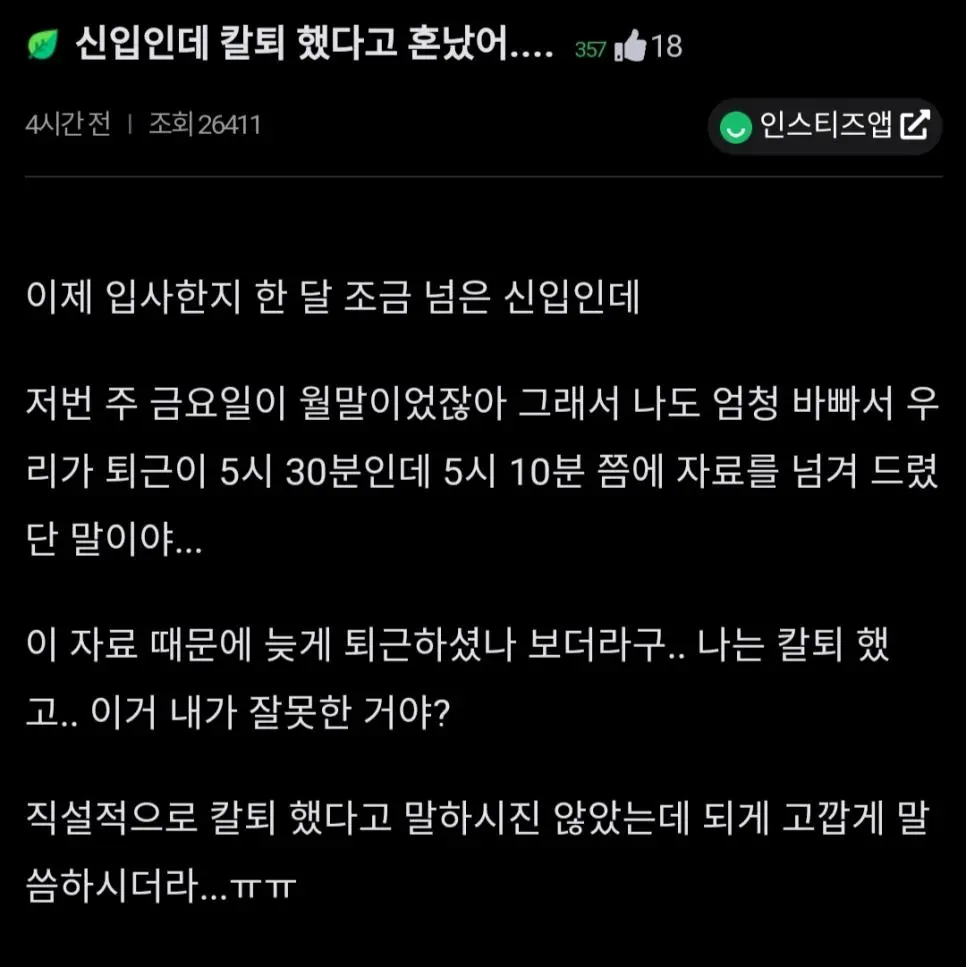 "신입사원 칼퇴했다고 혼났어..."