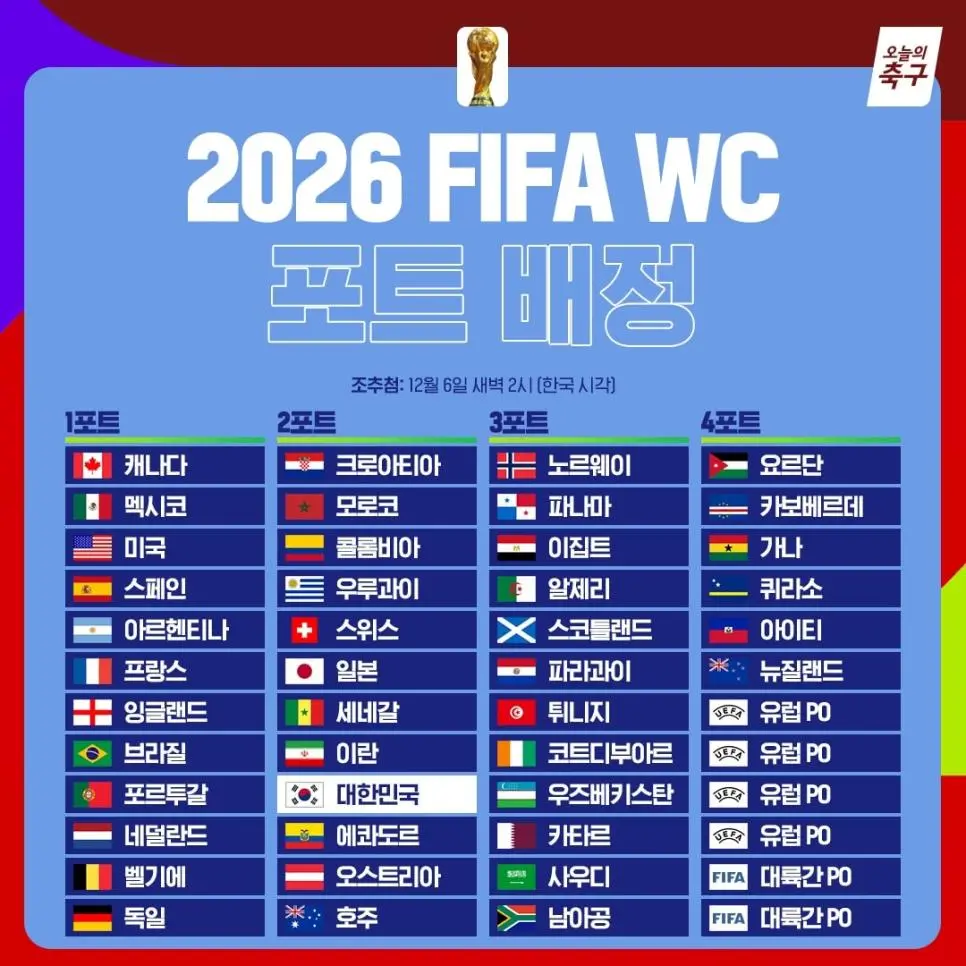 2026 월드컵 한국 포트 배정 결과