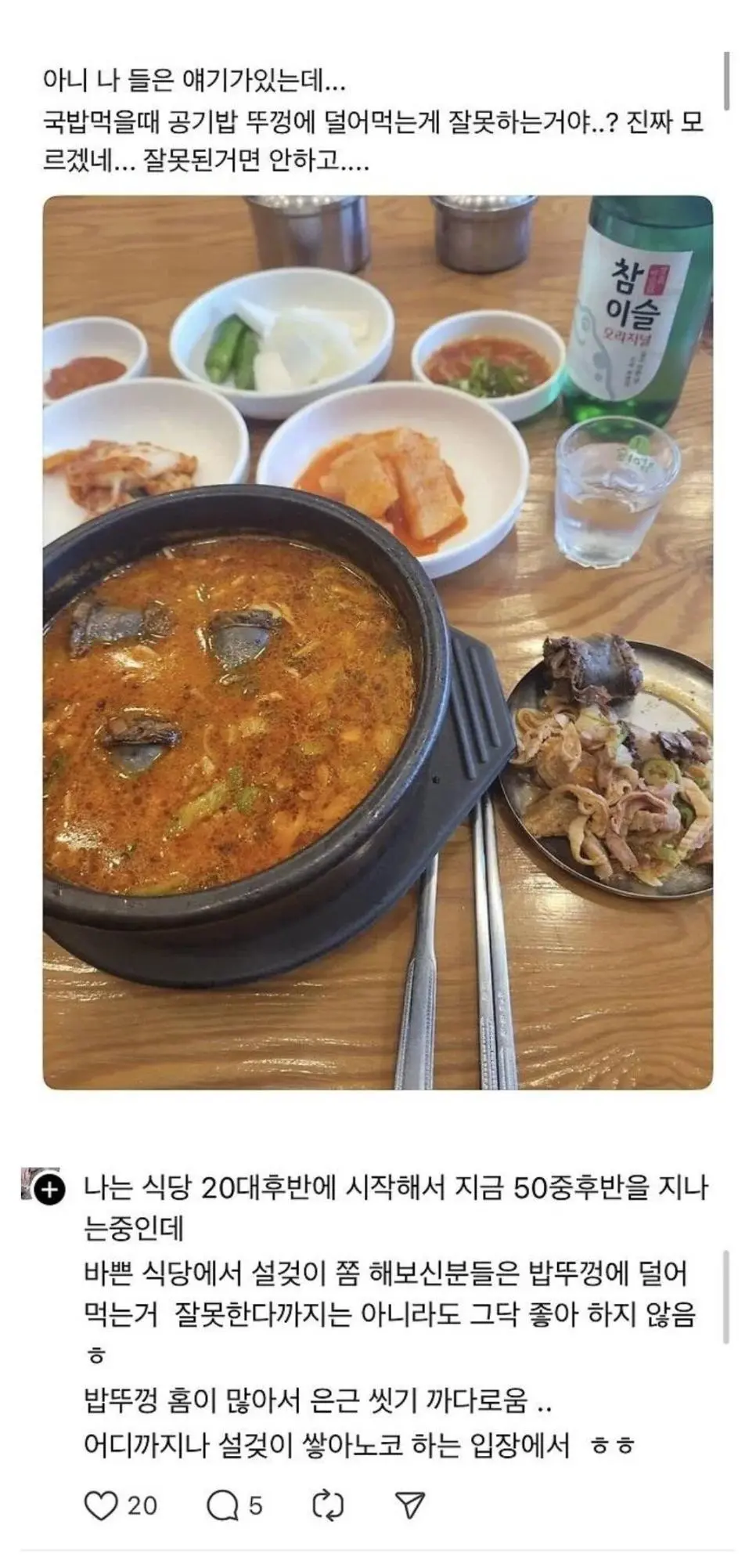 최근 논란인 국밥집 공기밥 뚜껑 논란