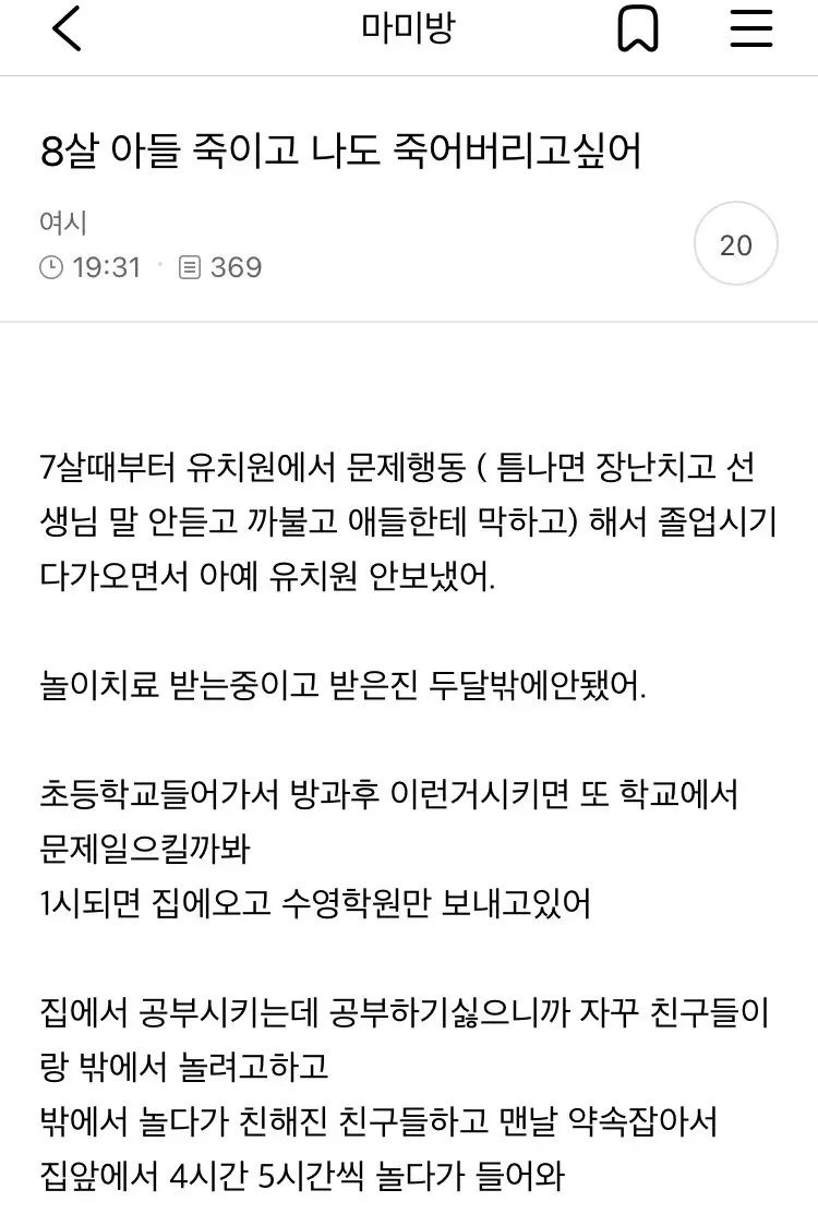 8살 아들 죽이고 본인도 죽어버리고싶다는 여성시대 회원 ^^