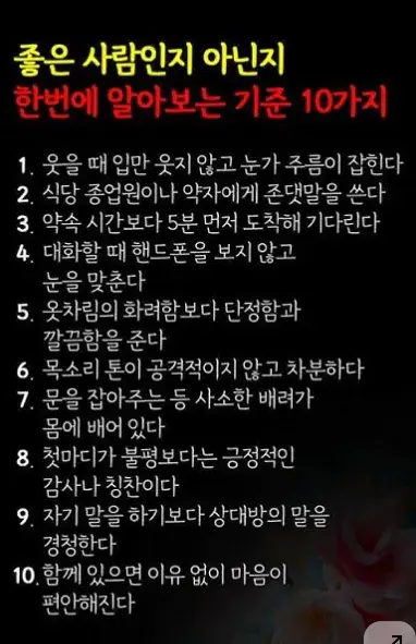 좋은 사람인지 알아보는 기준 10가지