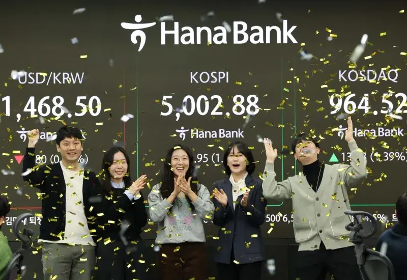 코스피 5000 달성, 행복한 하나은행 직원들