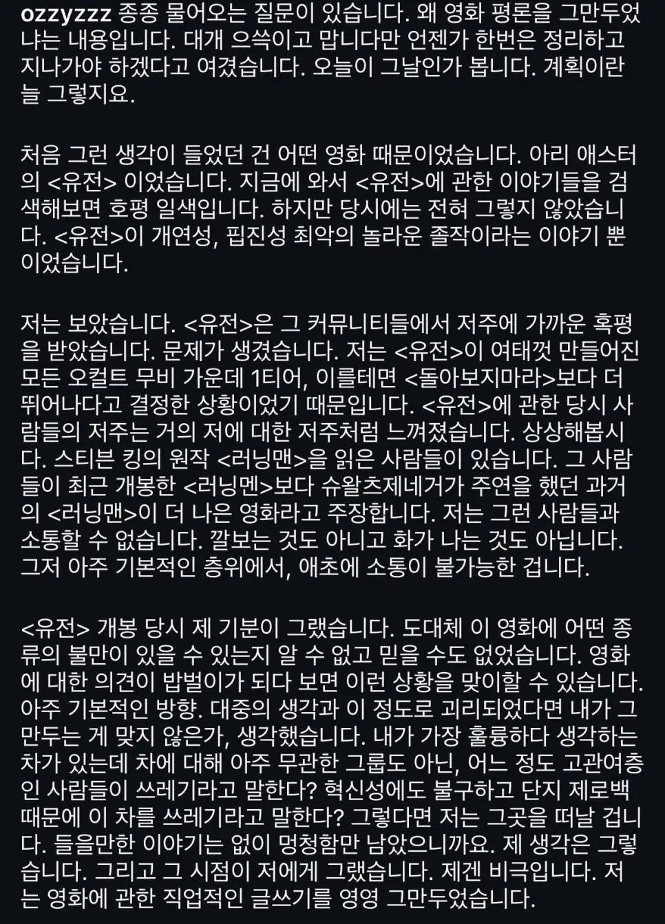 영화 대홍수 무차별 혹평에 분노한 허지웅 일침