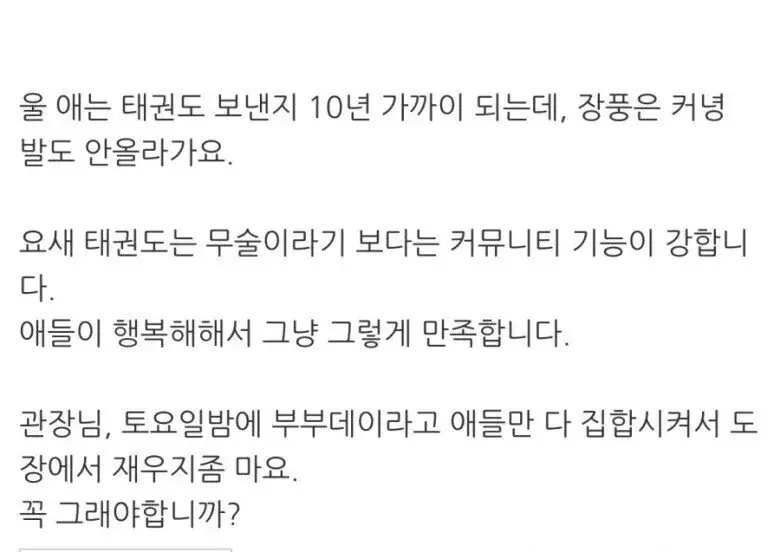 태권도 관장에게 불만이 많은 학부모