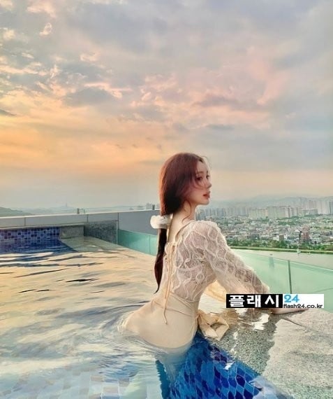 서든 광고 찍은 QWER 마젠타 흰 수영복