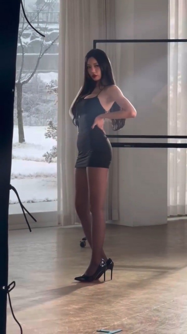 팬티 가터벨트 보여주는 오피스룩 끝판왕