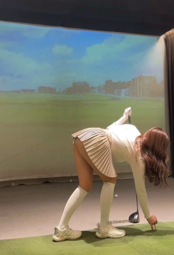 팬티 가터벨트 보여주는 오피스룩 끝판왕