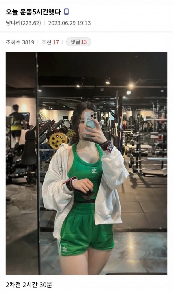 운동 5시간 한 거 디시에 인증사진 올린 누나