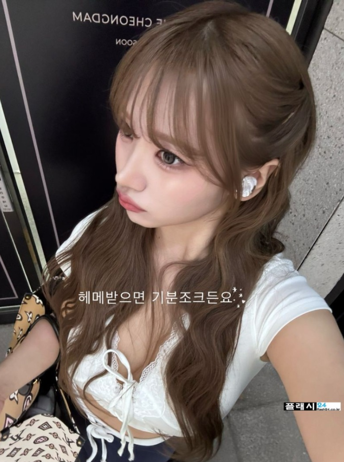 갈색 시스루 입은 미연 청바지핏