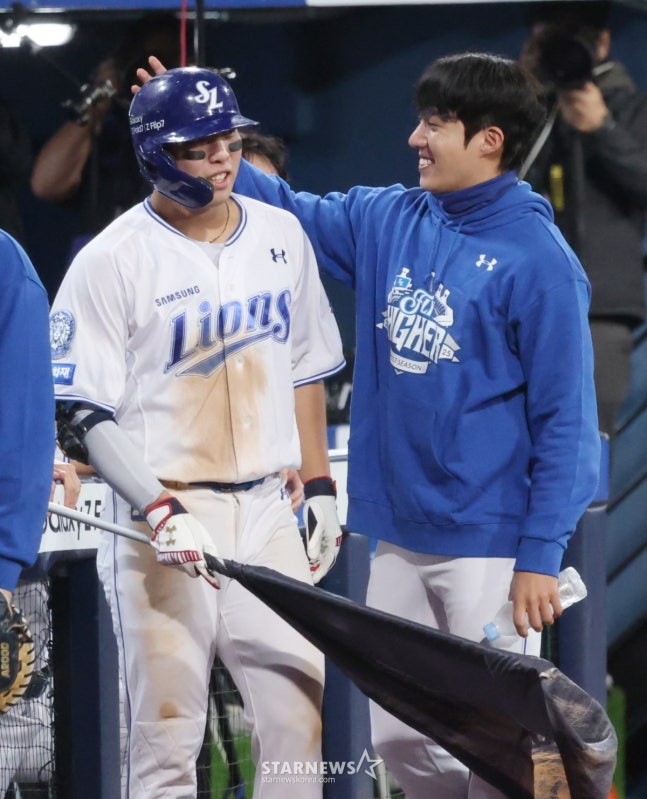 ▲ 김영웅 강민호 ⓒ곽혜미 기자 [스포티비뉴스=대구, 곽혜미 기자] 18살 차 대선배가 먼저 허리를 숙였다.…